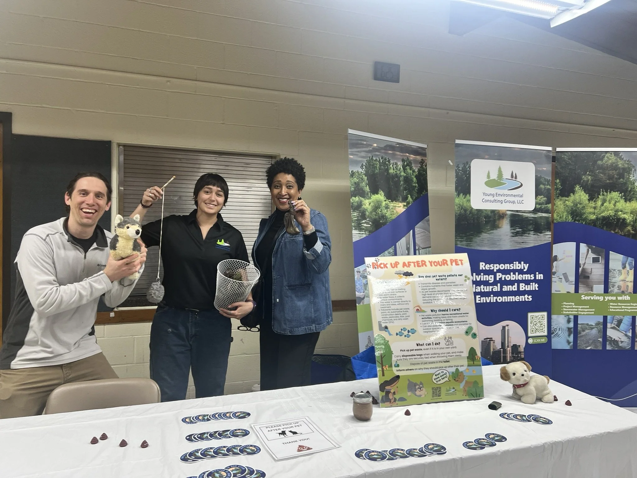 Our volunteer team designed a custom beanbag game that helped kids and their parents learn to toss pet waste bags into the trash rather than leaving it on the grass to enter storm drains. The game helped families see the connection between parks and lawns and our beloved lakes and streams. We also demonstrated how stormwater can help the pet waste enter waterbodies, and the negative impacts it can have on water quality and aquatic life. We were happy to have such productive conversations with the community to share this important message for Earth Day!